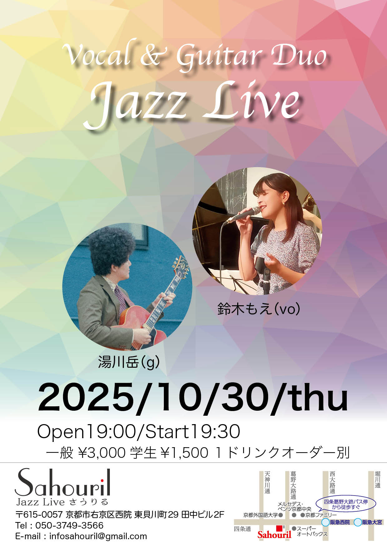 鈴木もえ(vo) 湯川岳(g) Start 19:30 MC ¥3,000(学生¥1,500)