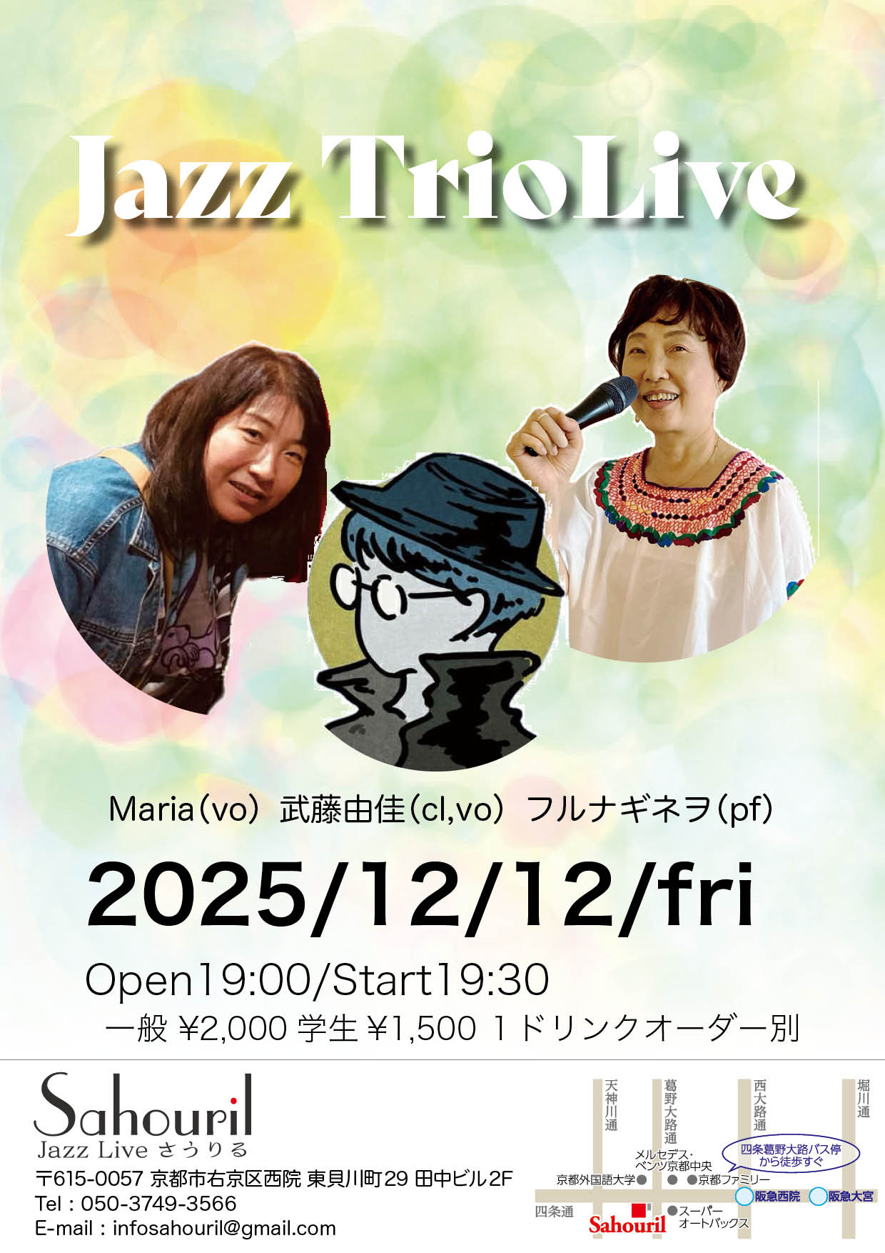 Maria(vo) 武藤由佳(cl, vo) フルナギネヲ(pf) Start 19:30 MC ¥2,000