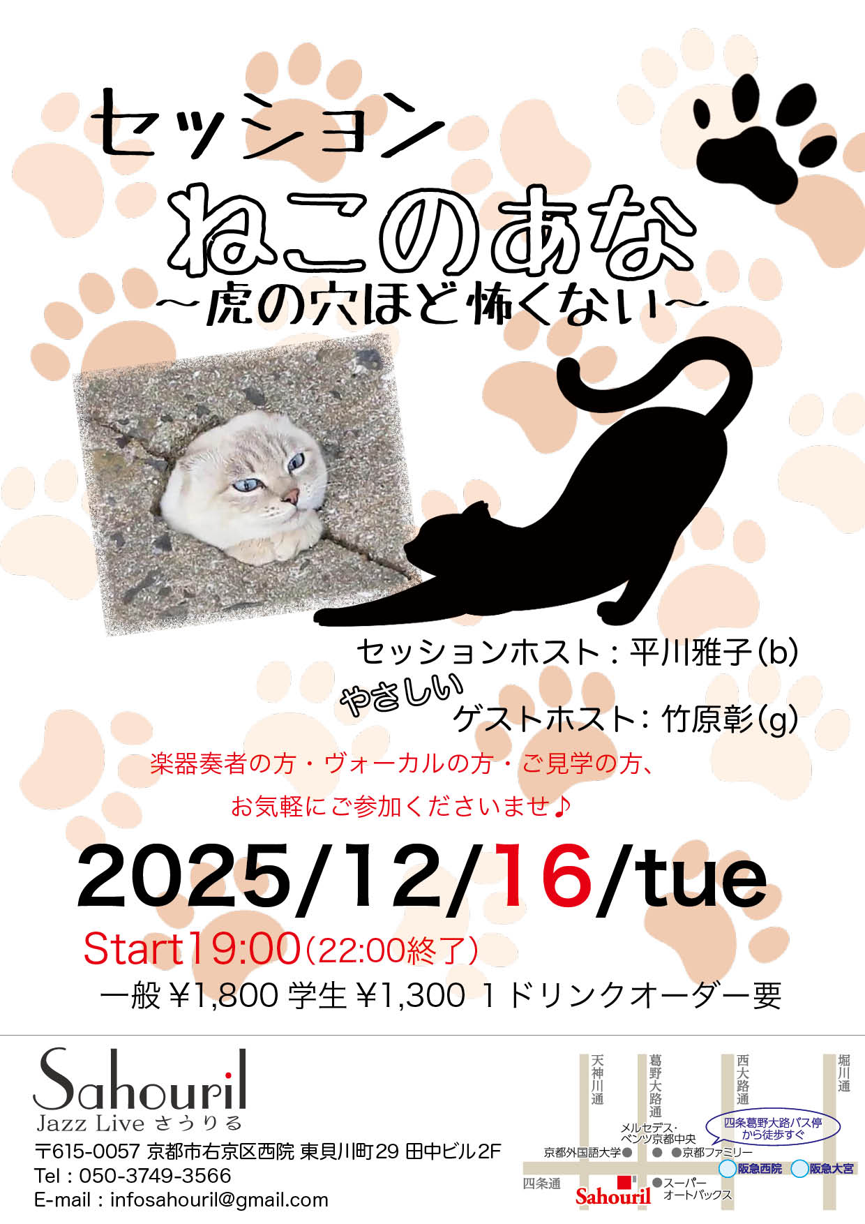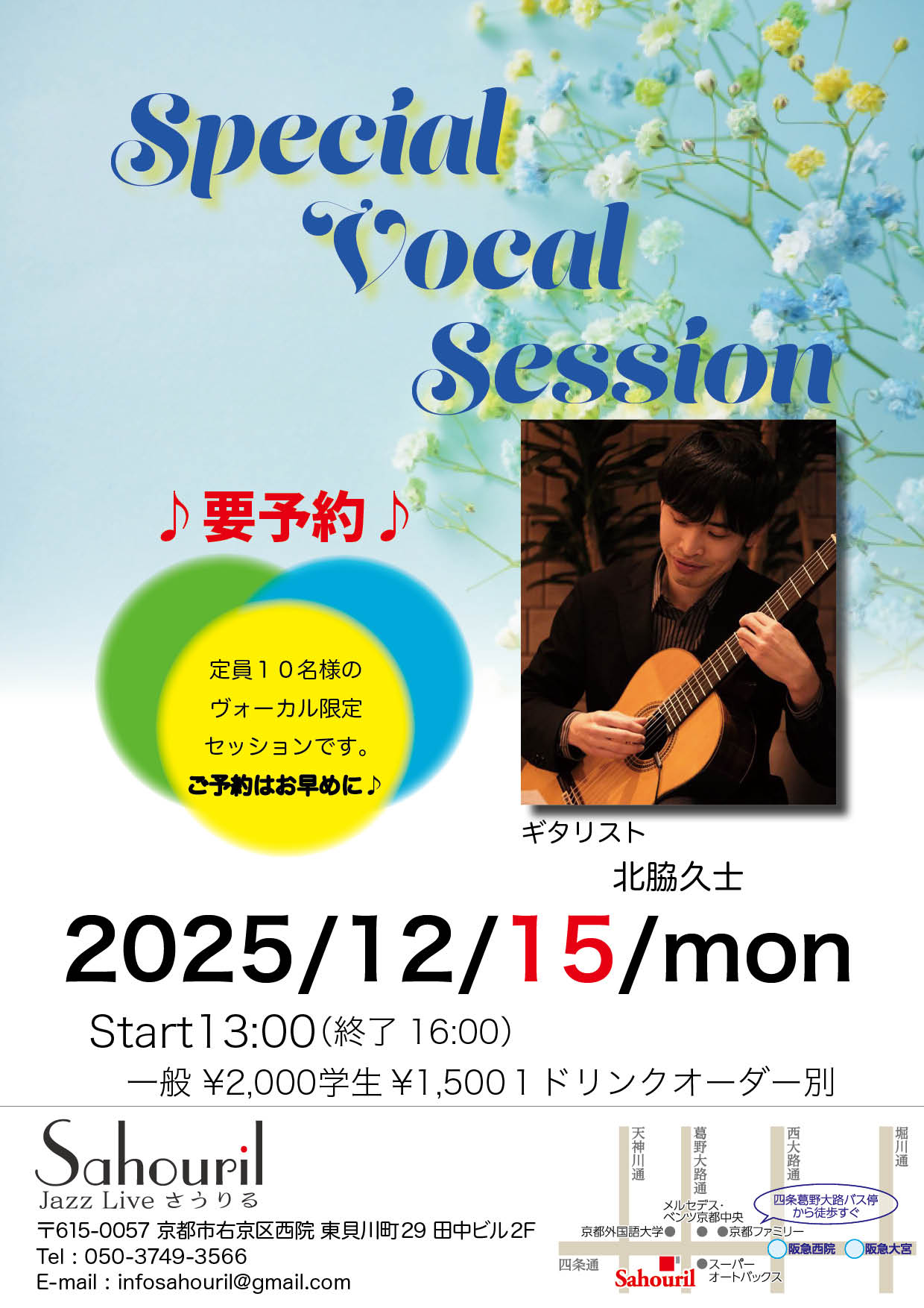 アドバイザー太田淑江 セッションホスト芝原勲(g) Start 13:00 MC ¥4,500