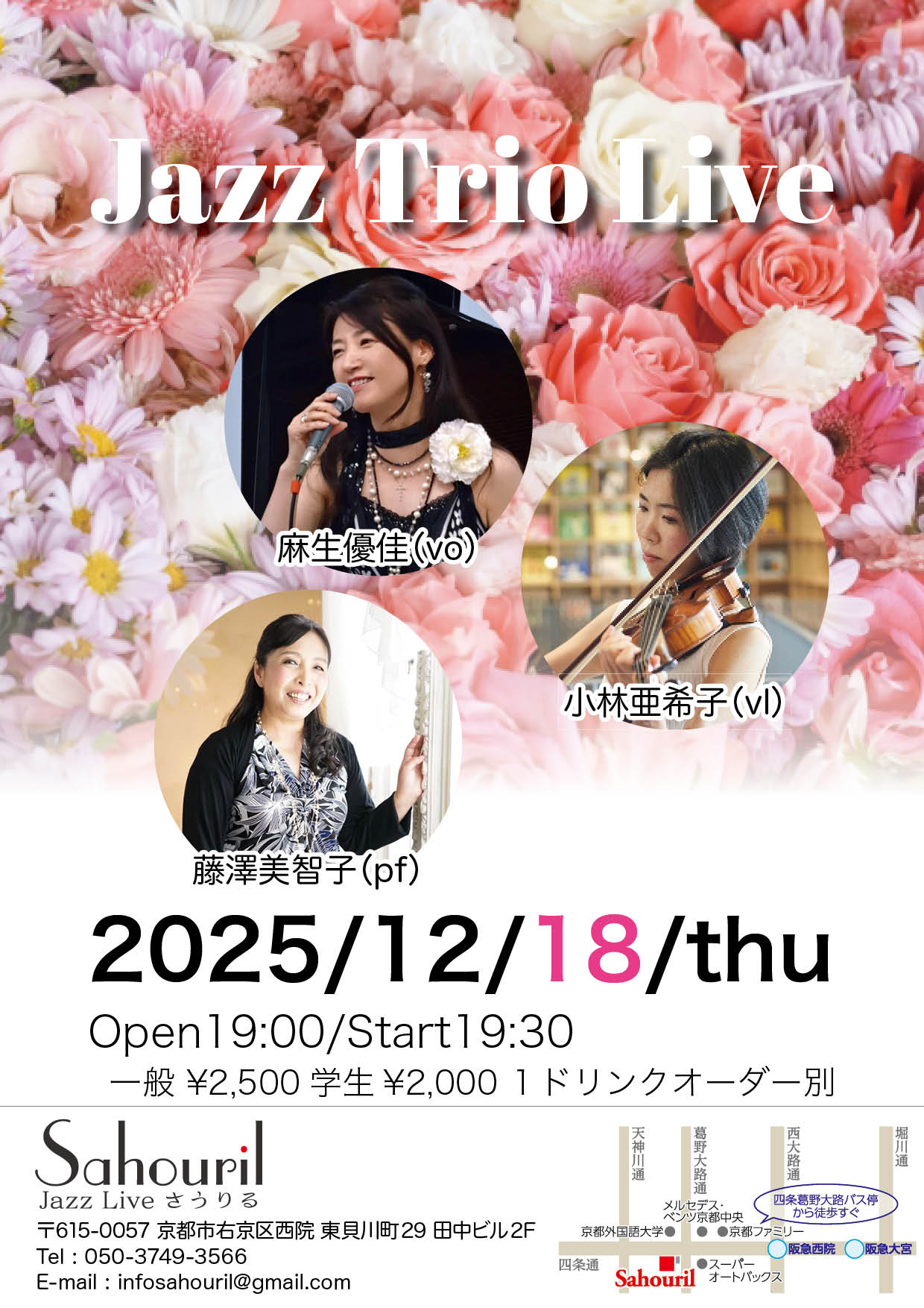 麻生優佳(vo) 小林亜希子(vl) 藤澤美智子(pf) Start 19:30 MC ¥2,500