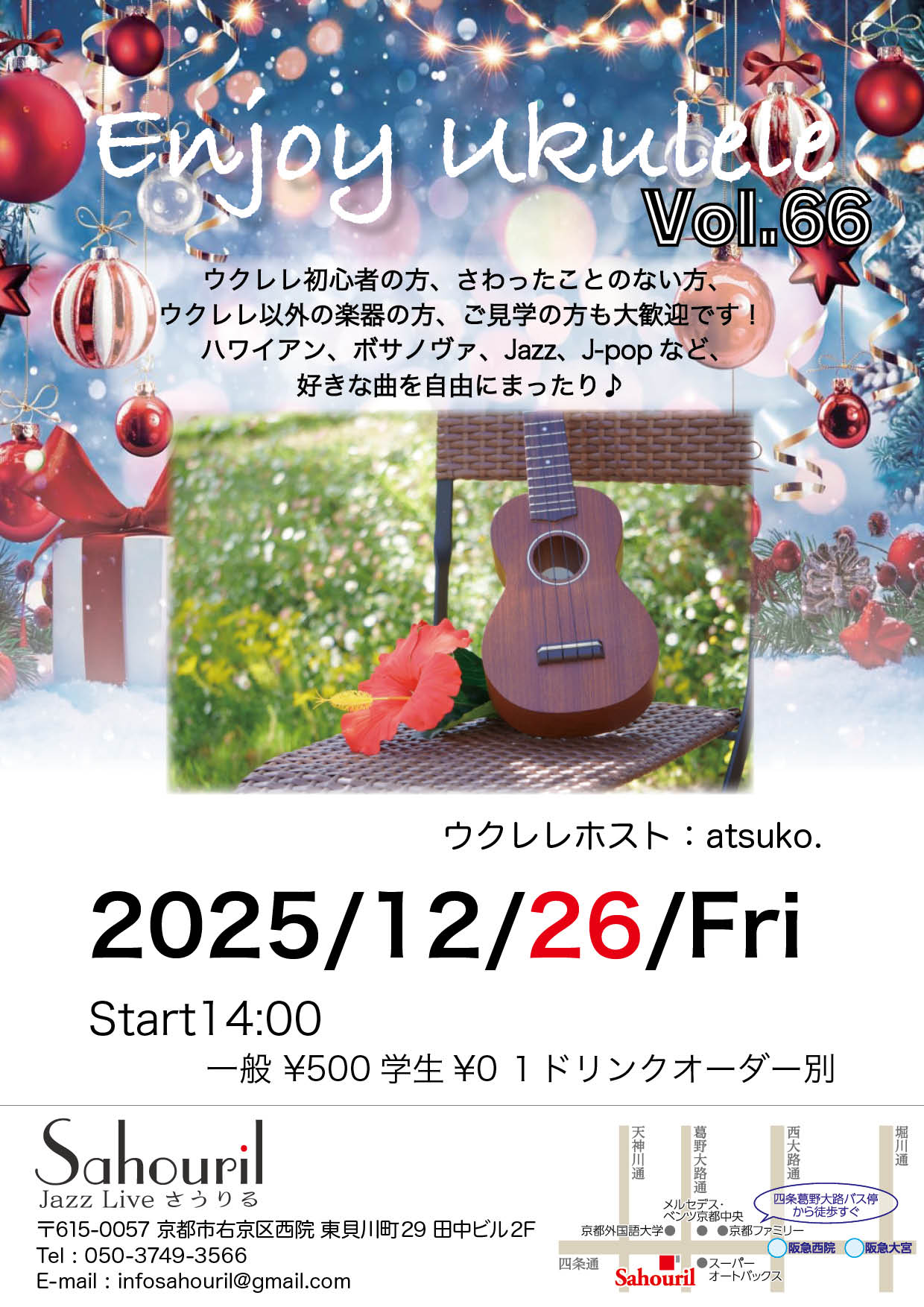 ホスト:atsuko. Start 14:00 SC ¥500