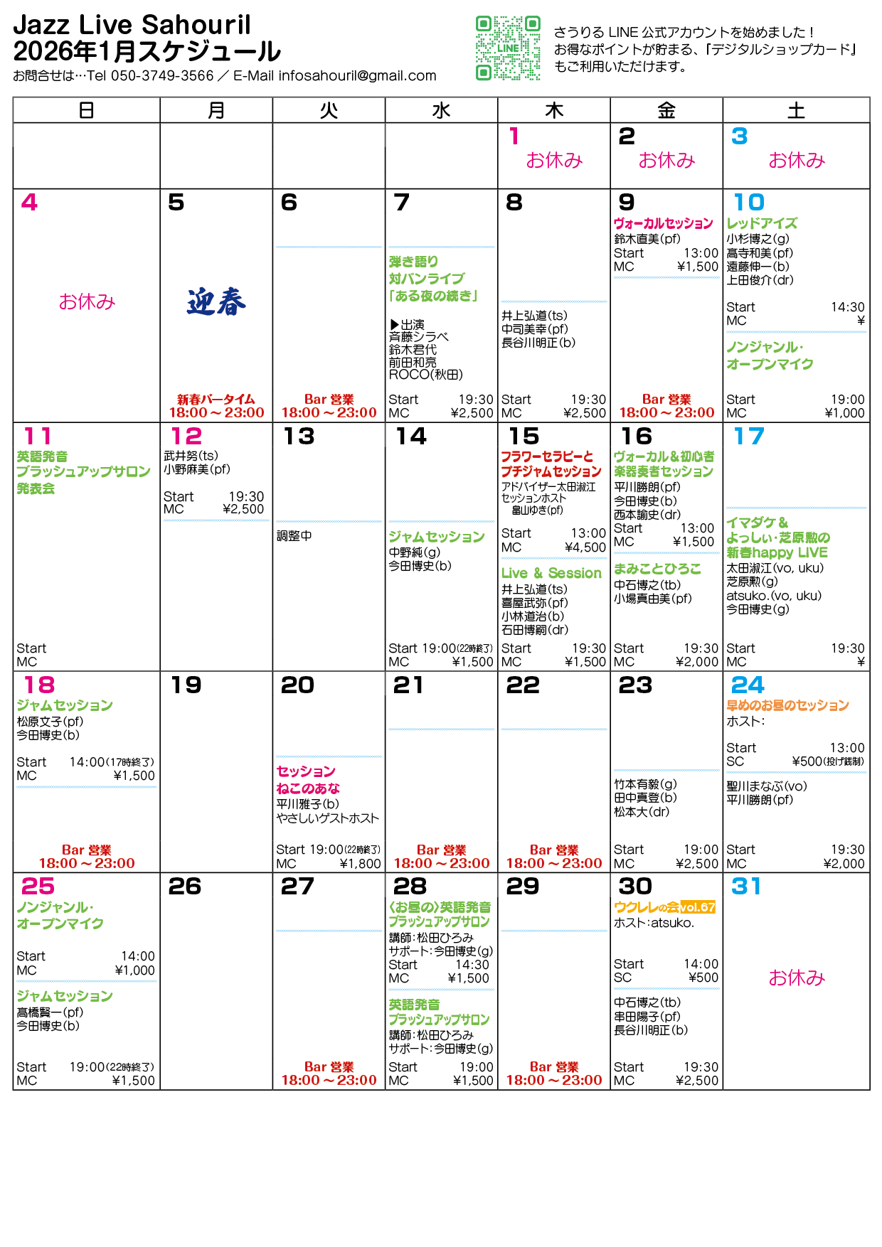 アドバイザー太田淑江 セッションホスト 畠山ゆき(pf) Start 13:00 MC ¥4,500