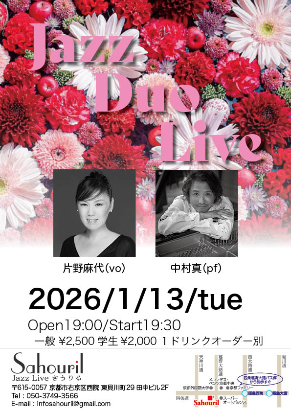 片野麻代(vo) 中村真(pf) Start 19:30 MC ¥2,500