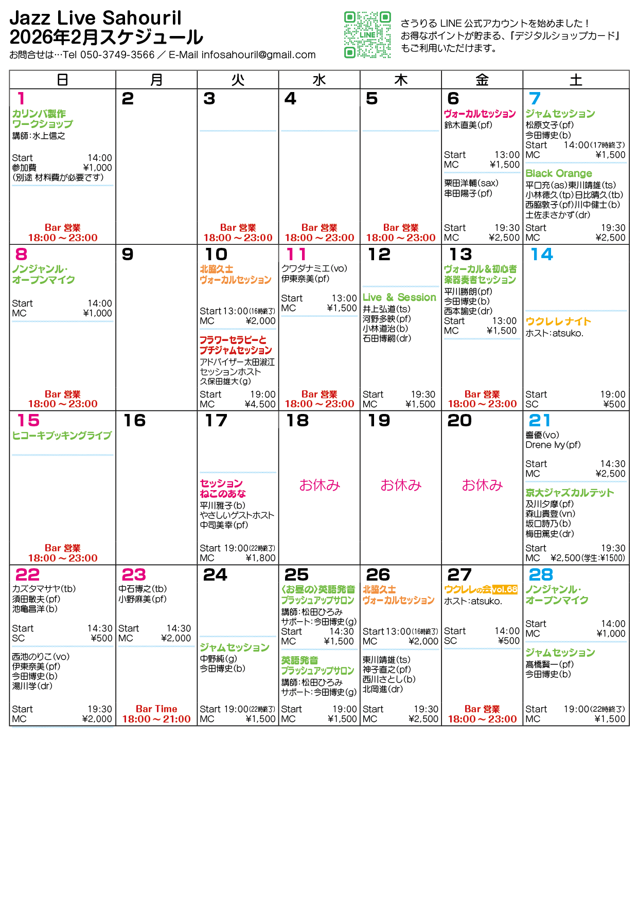 Start 13:00(16時終了) MC ¥2,000