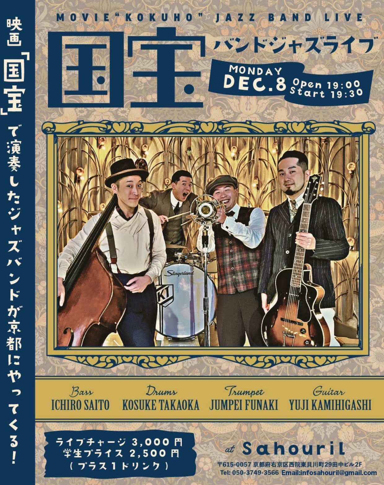 舟木順平(tp) 上東裕嗣(g) 斎藤一郎(b) 髙岡康介(dr) Start 19:30 MC ¥3,000