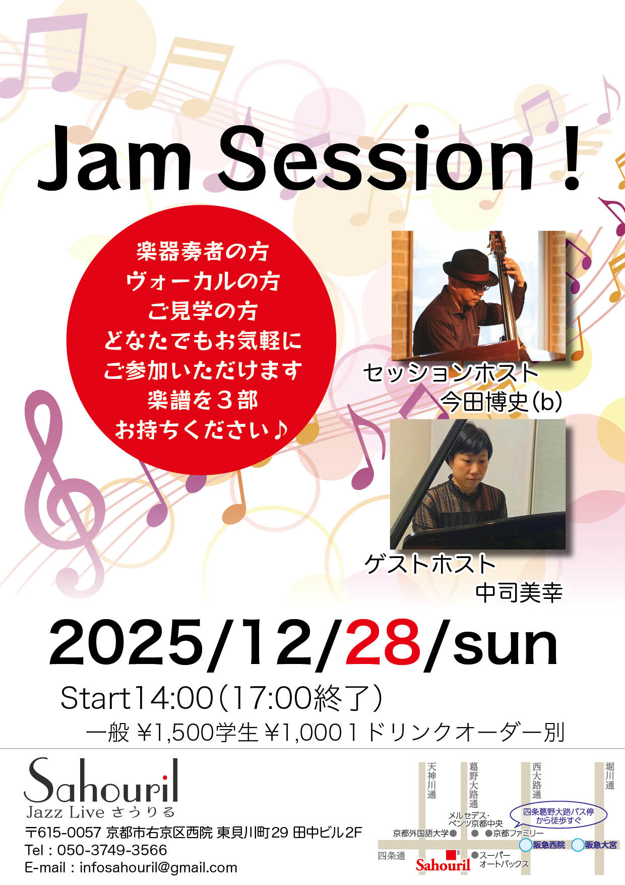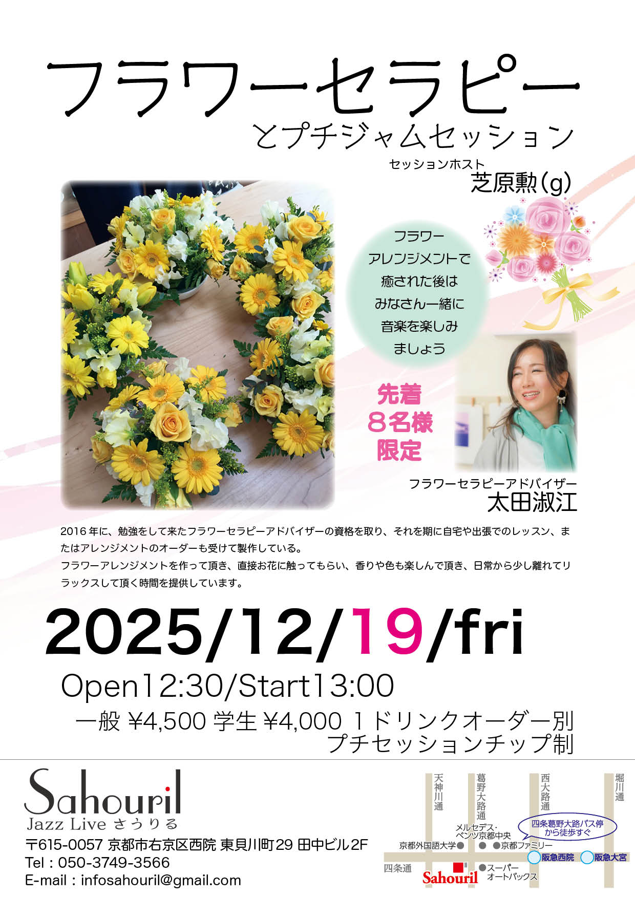 アドバイザー太田淑江 セッションホスト芝原勲(g) Start 13:00 MC ¥4,500