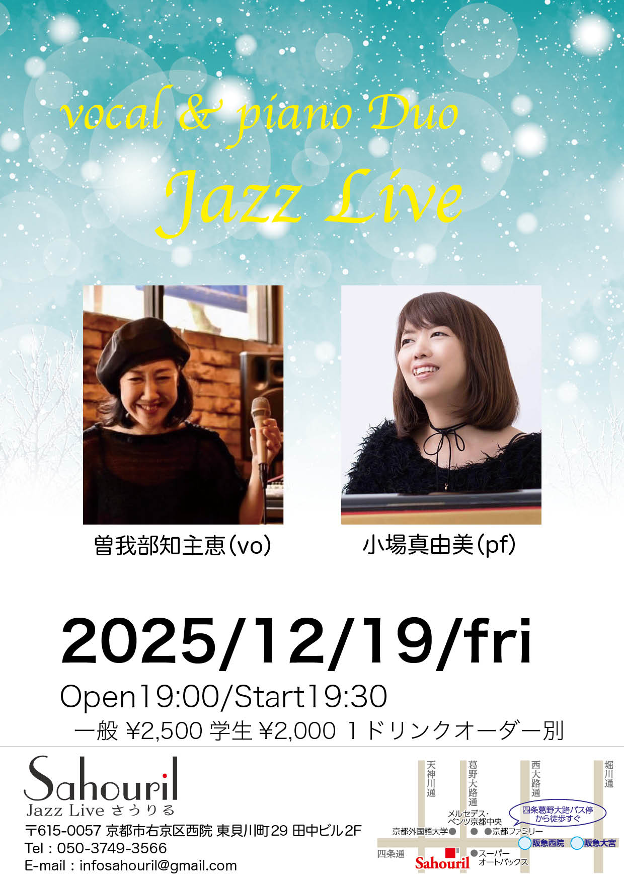 曽我部知主恵(vo) 小場真由美(pf) Start 19:30 MC ¥2,500