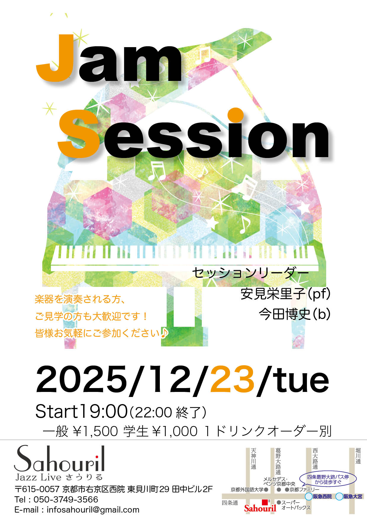 ジャムセッション 松原文子(pf) 今田博史(b) Start 14:00(17時終了) MC ¥1,500