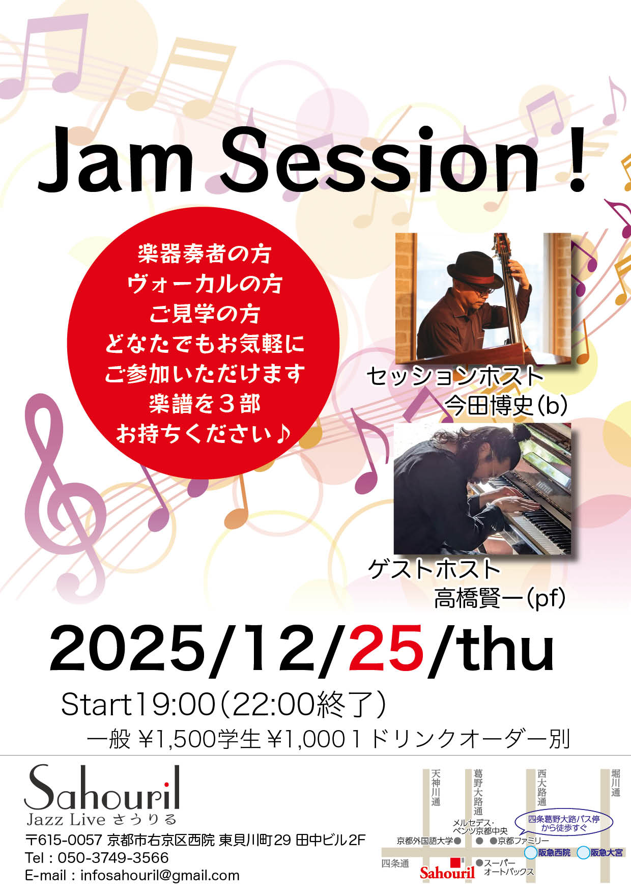 髙橋賢一(pf) 今田博史(b) Start 19:00(22時終了) MC ¥1,500