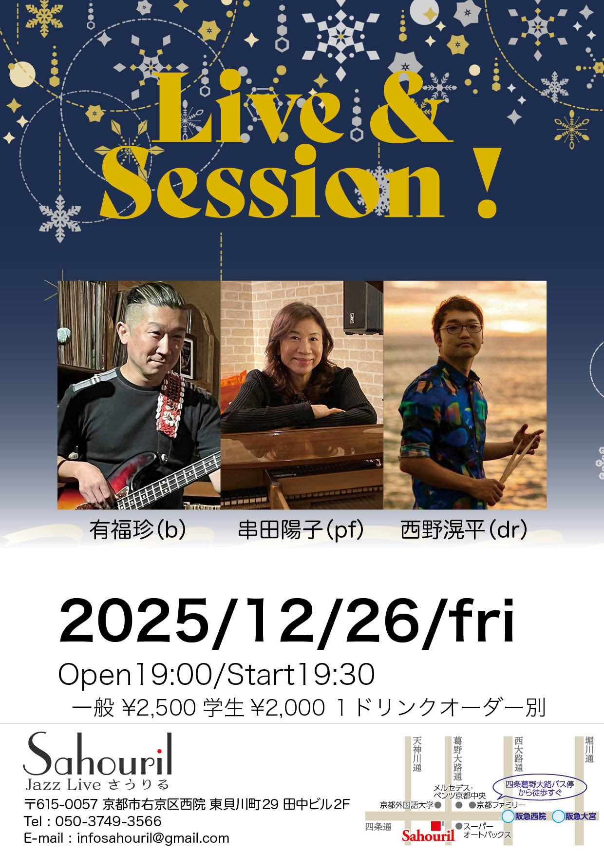 串田陽子(pf) 有福珍(b) 西野滉平(dr) Start 19:30 MC ¥2,500