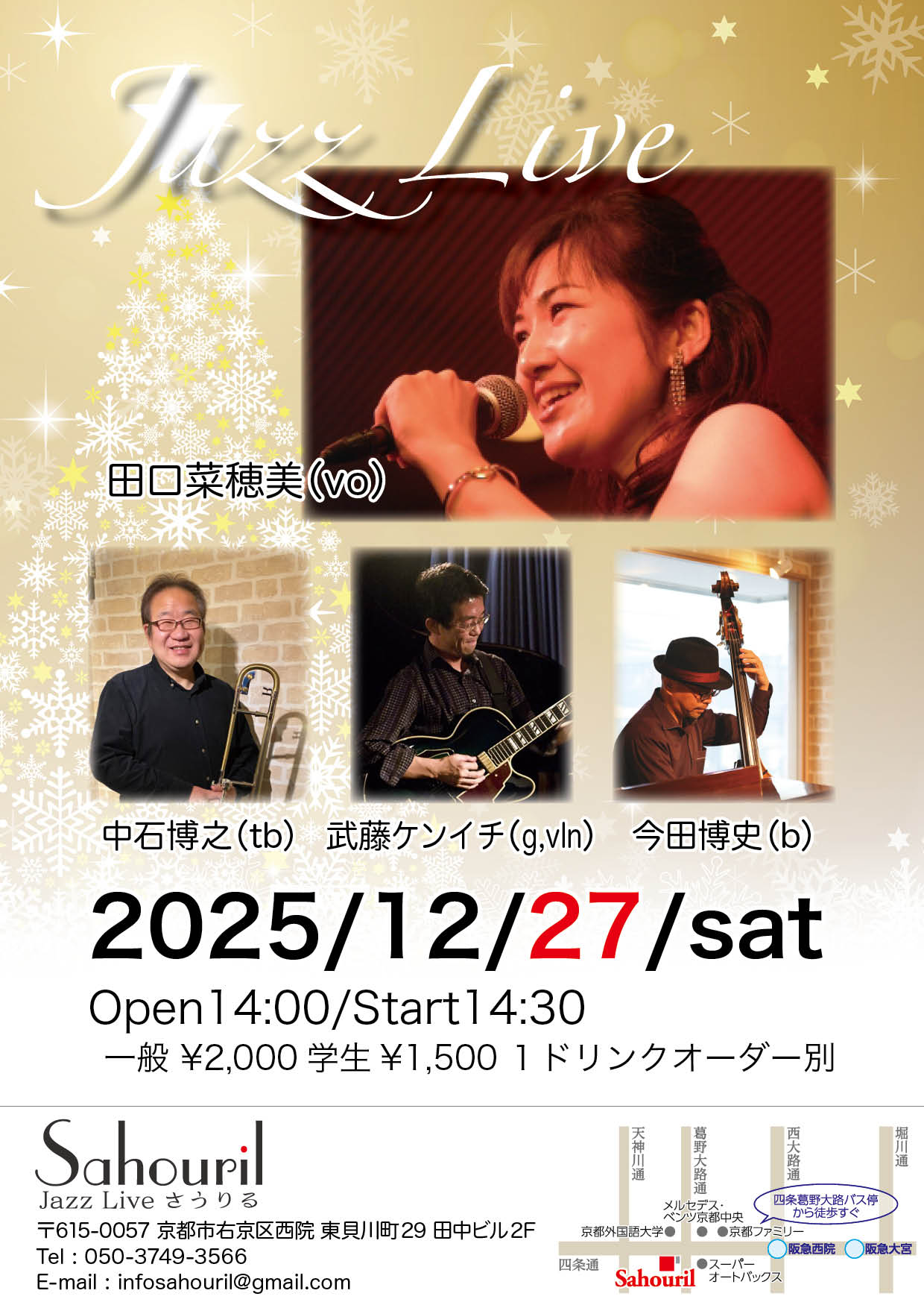 田口菜穂美(vo) 武藤ケンイチ(g) 中石博之(tb) 今田博史(b) Start 14:30 MC ¥2,000