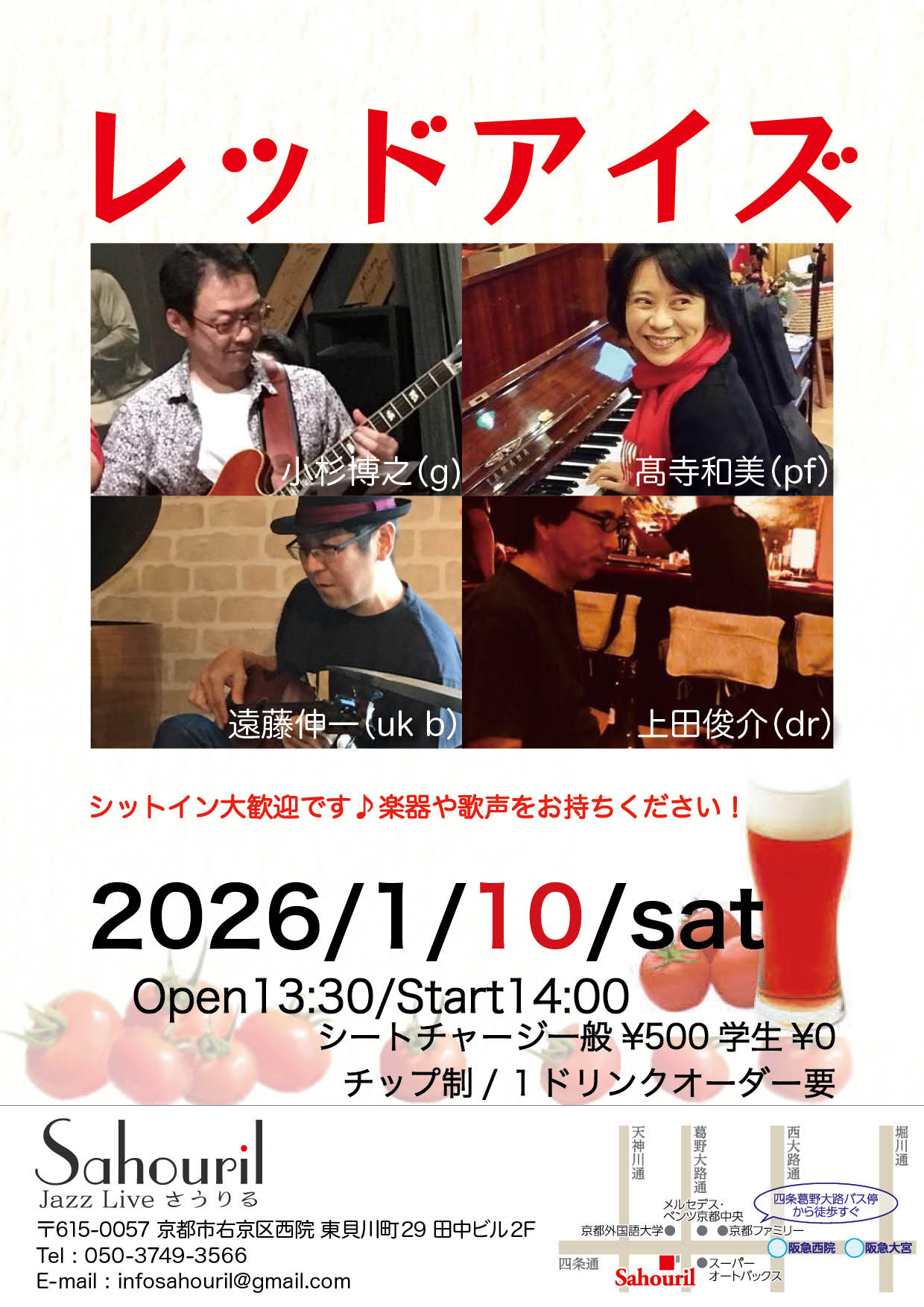 小杉博之(g) 髙寺和美(pf) 遠藤伸一(b) 上田俊介(dr) Start 14:30 MC ¥