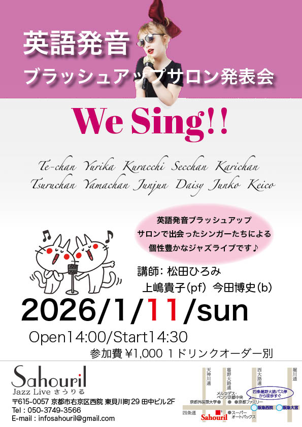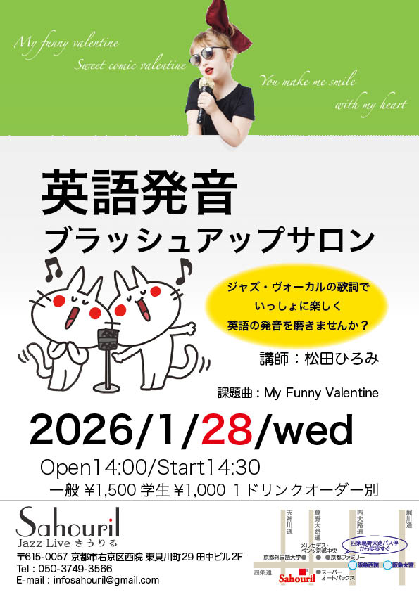 講師:松田ひろみ サポート:今田博史(g) Start 14:30 MC ¥1,500