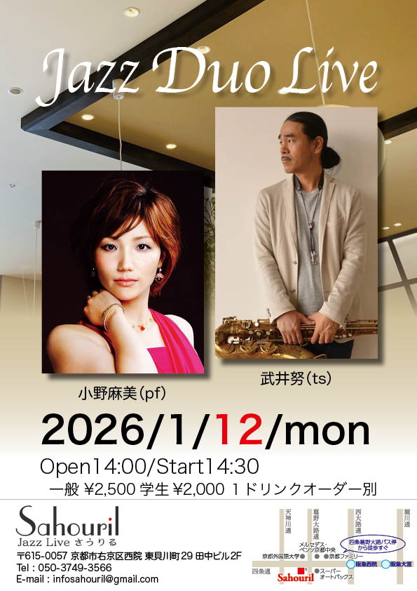 武井努(ts) 小野麻美(pf) Start 14:30 MC ¥2,500
