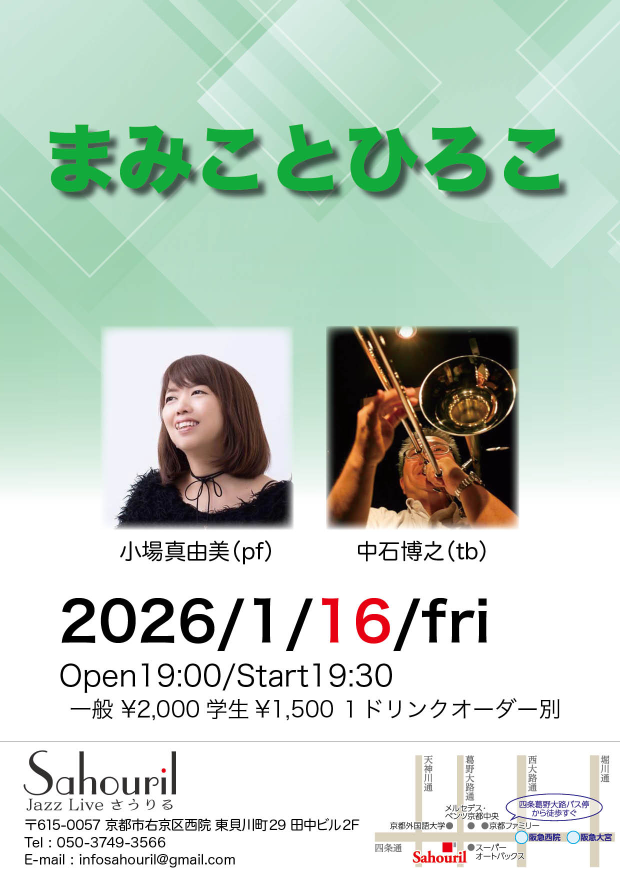 中石博之(tb) 小場真由美(pf) Start 19:30 MC ¥2,000