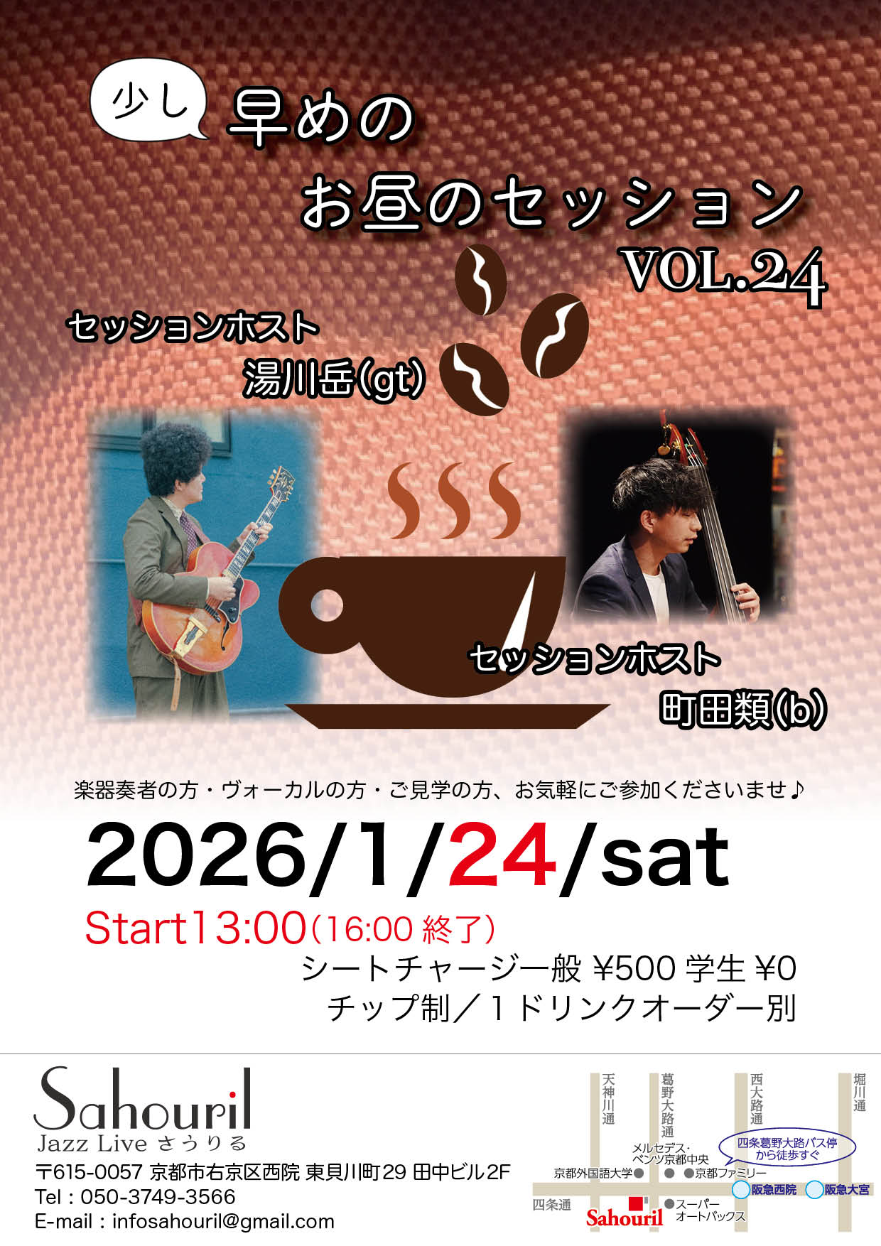 ホスト:湯川岳(g) 町田類(b) Start 13:00 SC ¥500(投げ銭制)