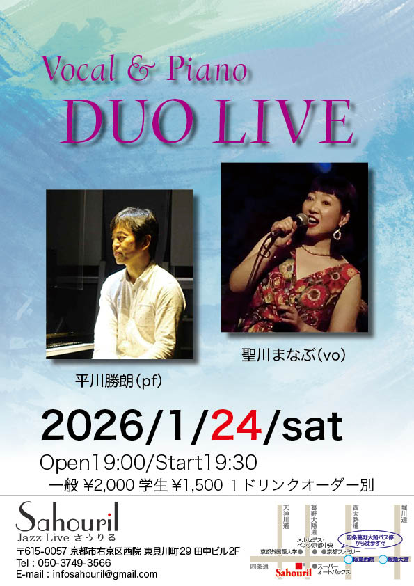 聖川まなぶ(vo) 平川勝朗(pf) Start 19:30 MC ¥2,000
