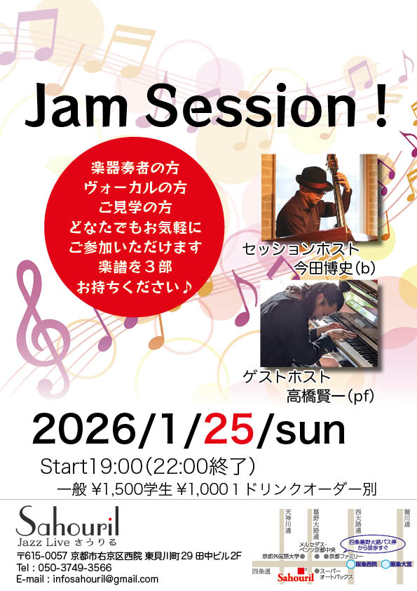 髙橋賢一(pf) 今田博史(b) Start 19:00(22時終了) MC ¥1,500