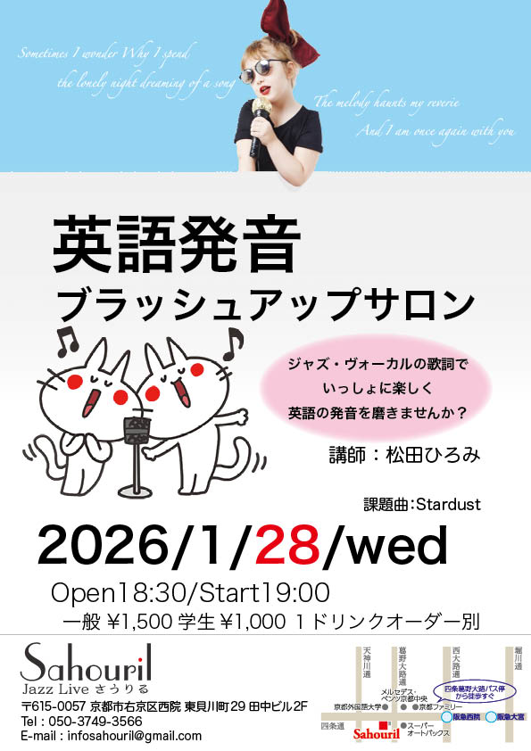 講師:松田ひろみ サポート:今田博史(g) Start 19:00 MC ¥1,500